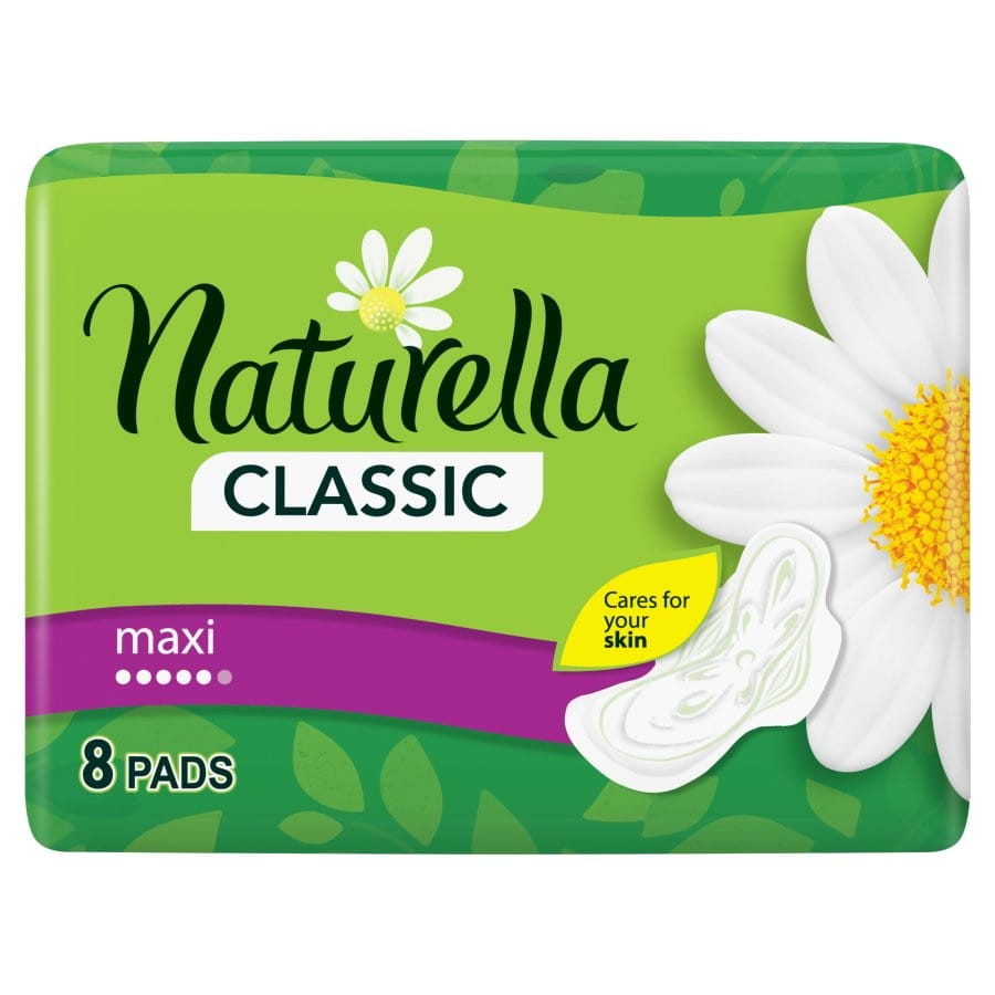 Podpaski Naturella Classic Maxi ze skrzydełkami mają rumiankową kompozycję zapachową i specjalny system chłonny z kwiatowym wzorem, który odprowadza wilgoć i utrzymuje ją z dala od skóry, dzięki czemu będziesz czuła się sucho i komfortowo.